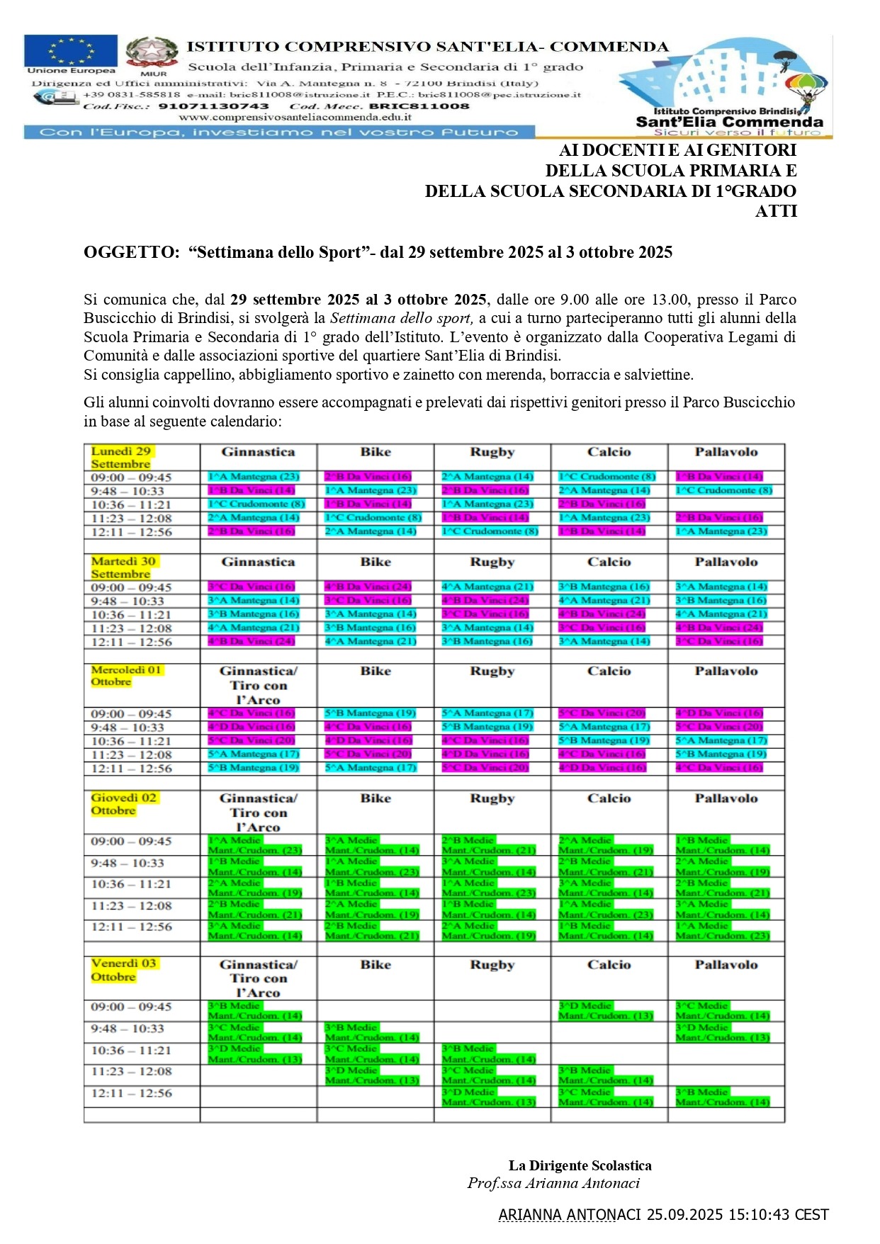 HomeSlide news In primo piano CircolariCOMUNICAZIONE SETTIMANA DELLO SPORT 29 SETTEMBRE – 3 OTTOBRE 2025 COMUNICAZIONE SETTIMANA DELLO SPORT 29 SETTEMBRE – 3 OTTOBRE 2025 Categorie Circolari In primo piano Slide news Data: 26/09/2025 COMUNICAZIONE ASSEMBLEA SINDACALE DEL 29 SETTEMBRE 2025- 8.00-10.00 CIRCOLARE SCIOPERO DEL 3 ottobre 2025