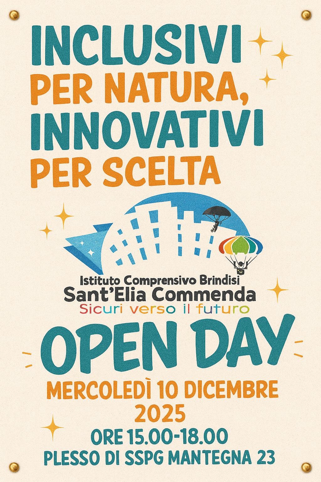OPEN DAY SCUOLA SECONDRARIA DI I GRADO – PLESSO MANTEGNA 23, mercoledì 10 DICEMBRE, ore 15.00 – 18.00