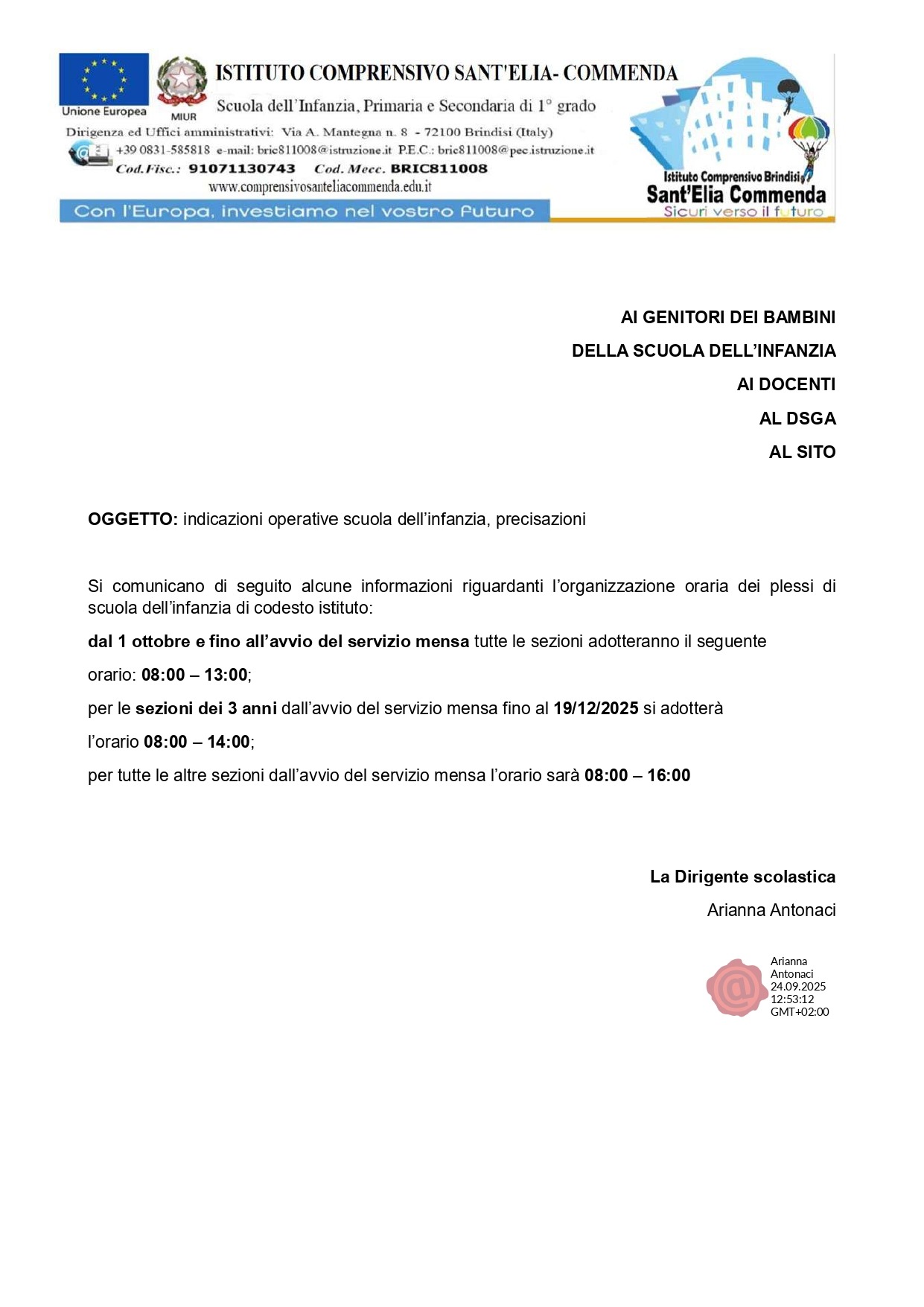 HomeSlide news Scuola Infanzia In primo piano CircolariORGANIZZAZIONE ORARIA SCUOLA DELL’INFANZIA – PRECISAZIONI ORGANIZZAZIONE ORARIA SCUOLA DELL’INFANZIA – PRECISAZIONI Categorie Circolari In primo piano Scuola Infanzia Slide news Data: 24/09/2025 UNDICI ANNI DI CRESCITA E ISPIRAZIONE. IL SALUTO ALLA DIRIGENTE LUCIA PORTOLANO DAL SUO CORPO DOCENTE COMUNICAZIONE ASSEMBLEA SINDACALE DEL 29 SETTEMBRE 2025- 8.00-10.00