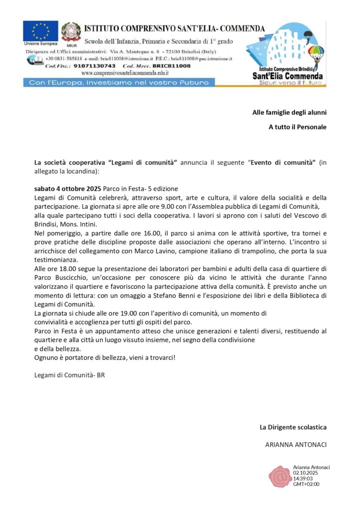 PARCO IN FESTA 2025 – FESTA DELLO SPORT, ARTE E CULTURA – Sabato 4 ottobre 2025