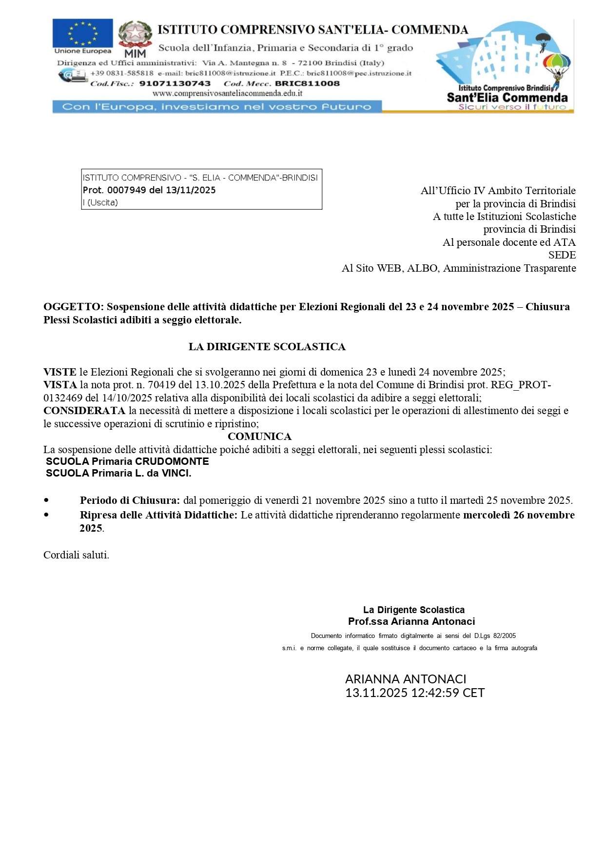 HomeSlide news In primo pianoSospensione delle attività didattiche per Elezioni Regionali del 23 e 24 novembre 2025 – Chiusura Plessi Scolastici adibiti a seggio elettorale Sospensione delle attività didattiche per Elezioni Regionali del 23 e 24 novembre 2025 – Chiusura Plessi Scolastici adibiti a seggio elettorale Categorie In primo piano Slide news Data: 15/11/2025 HALLOWEEN A SCUOLA! – Classe 2^B S.P. Leonardo da Vinci Comunicazione organizzazione oraria per assemblea sindacale- 19 novembre 2025
